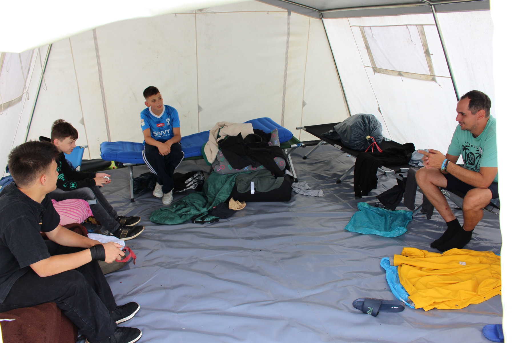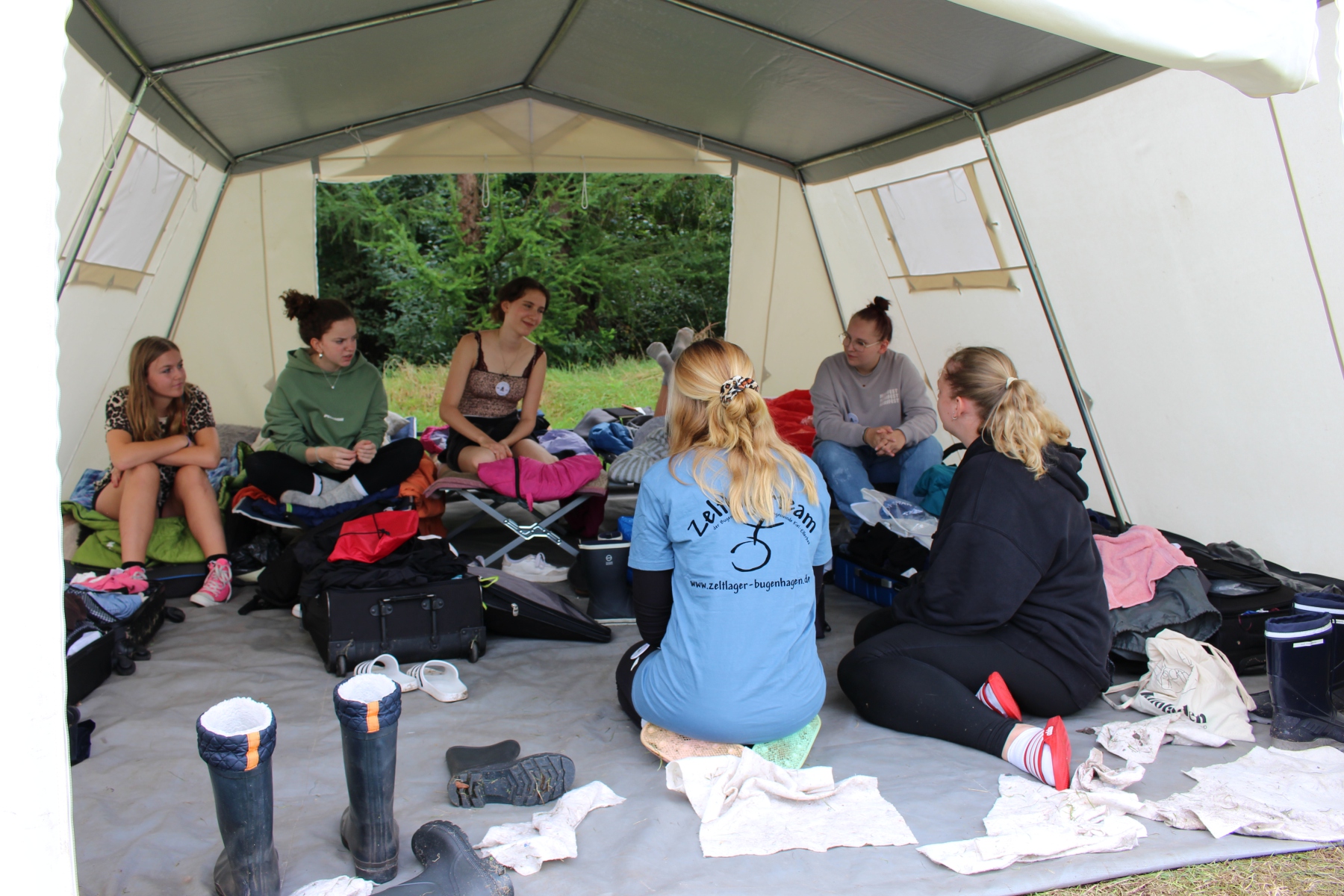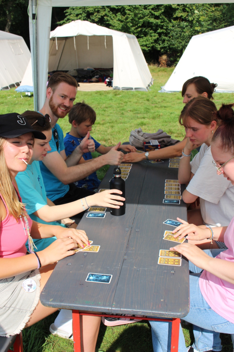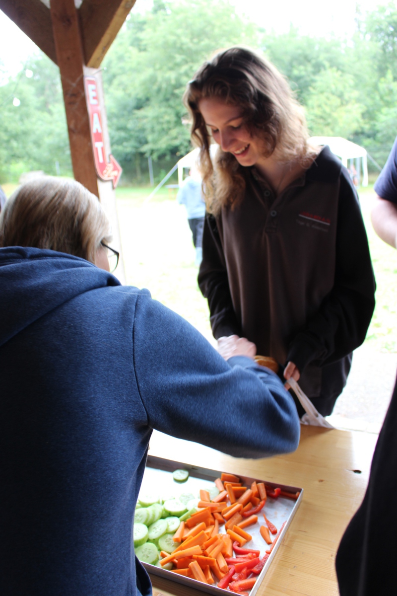 Um 9:15 Uhr gab es das erste Frühstück in diesem Zeltlager. Jeder konnte sich aussuchen, ob er Brötchen mit Wurst, Käse, Marmelade, Frischkäse oder Nuss Nougat Creme oder Cornflakes mit Milch essen wollte.