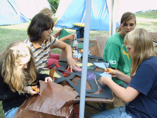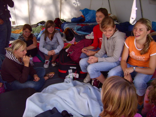 Zelt 1: Manu mit Melina, Tatjana, Jule, Sarah Ann-Cathrin, Jannie, Ann-Kathrin, |