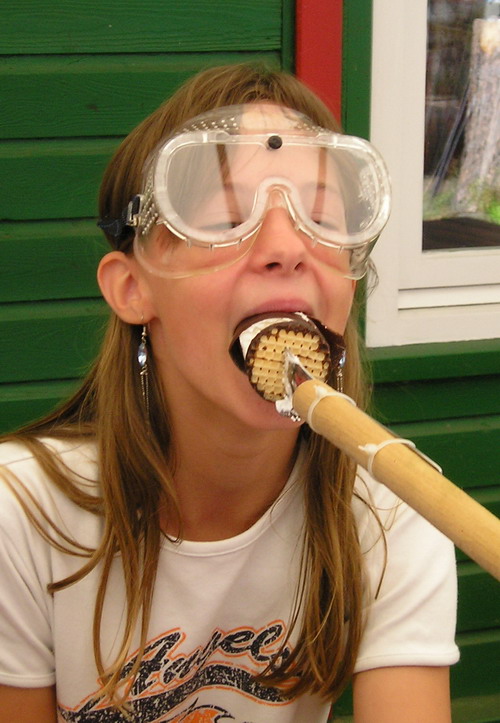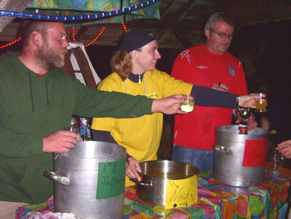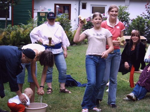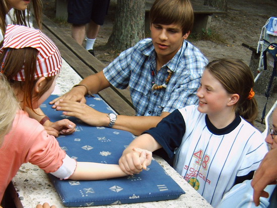 Kräftemessen beim Armdrücken, "Messerwerfen" mit nassen Schwämmen,...