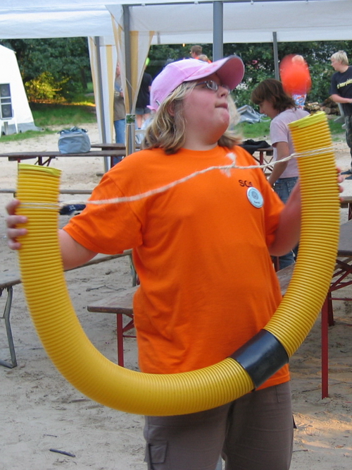 Auch in der Freizeit konnten sich die Kinder sportlich betätigen. Sarah konnte das Spiel mit dem Drainagerohr supergut |