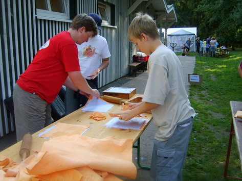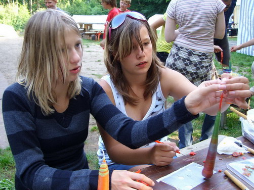 Schleuder und Murmelbilder, Speckstein, Kerzen ziehen, Karten herstellen, Papier schöpfen