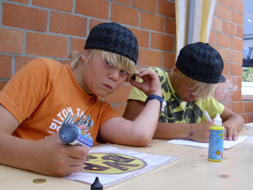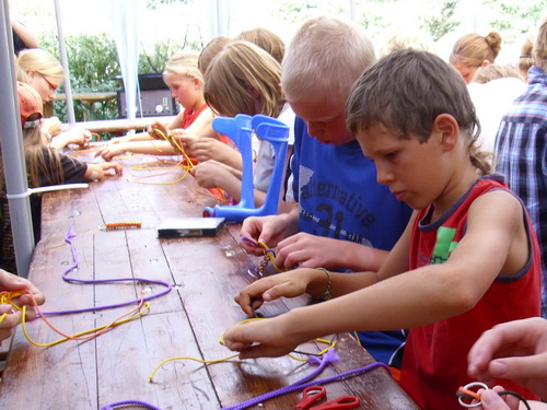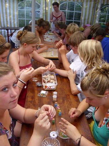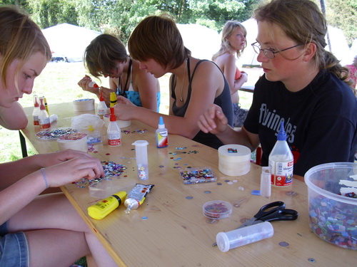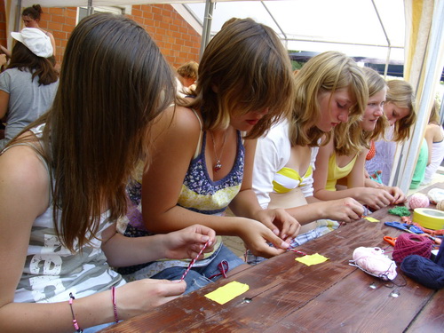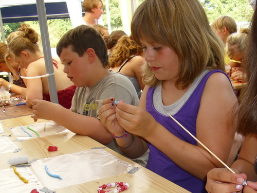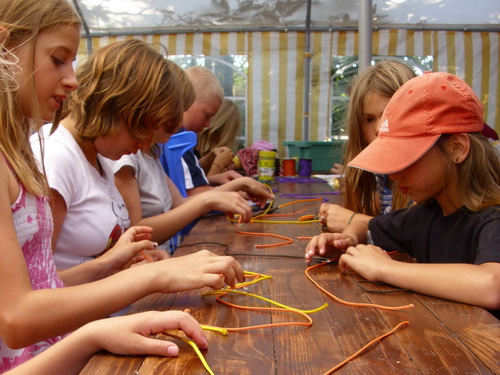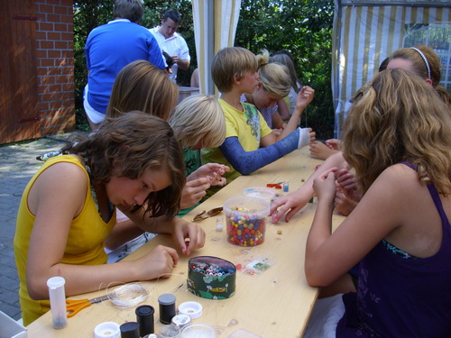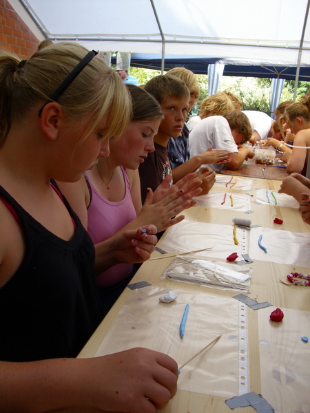 Schattenplätze waren sehr begehrt und so drängten sich die Kinder zum Basteln unter dem Sonnensegel und unter den Pavillons.