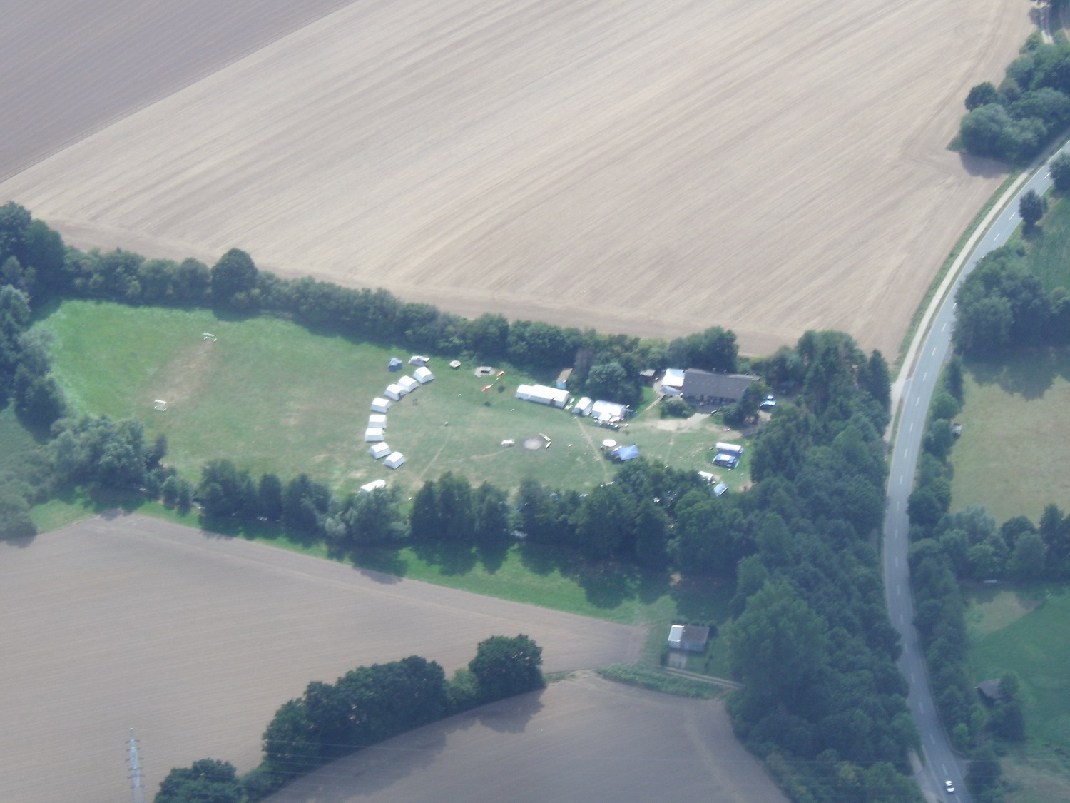 um mit dem Segelflugzeug über den Zeltplatz zu schweben.