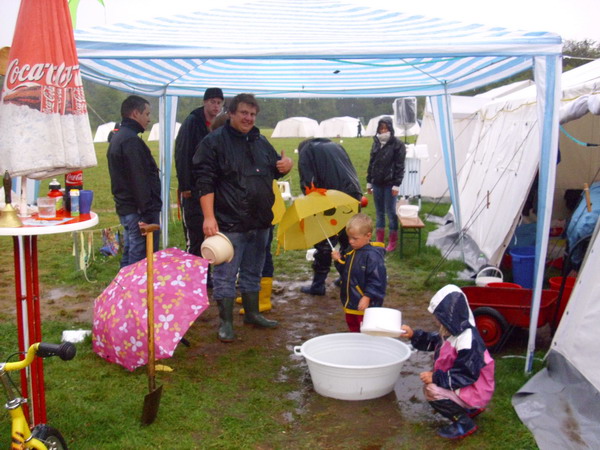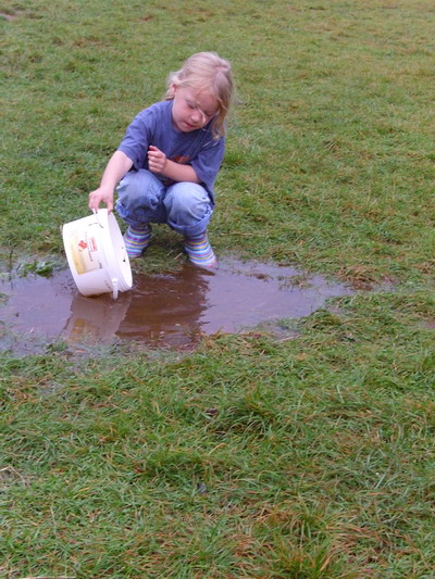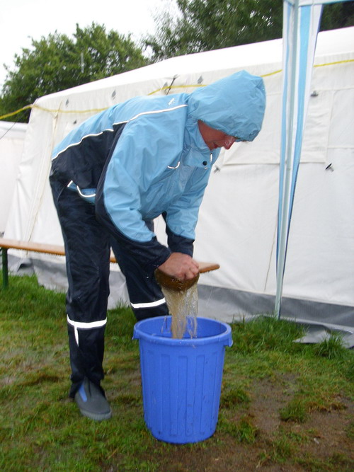Am Abend verzögerte sich das Abendbrot, weil es wie aus Eimern regnete.