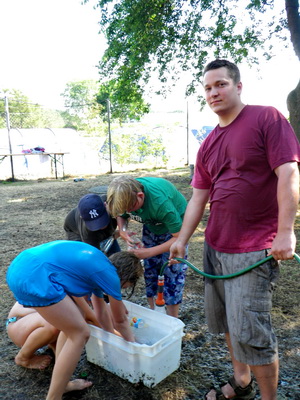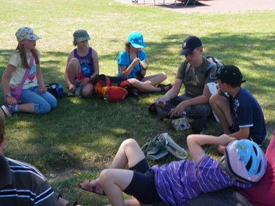 Die Kinder mussten im Dorf einige Antworten auf die Fragen von ihrem Laufzettel suchen.