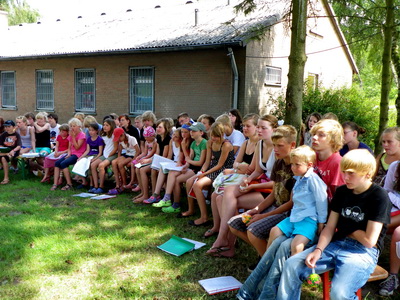 Das Kinderlager spielte Plumperquatsch - ein Quiz, bei dem die Jungen gegen die Mädchen antraten.
