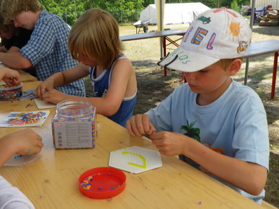(Verstecken oder Flaschendrehen spielen, Bügelperlenfische, Bilder malen, Fische filzen, Theater spielen,...)