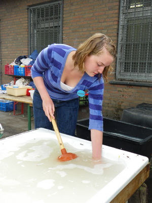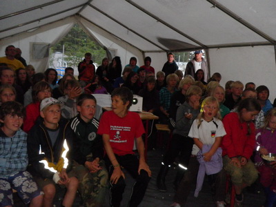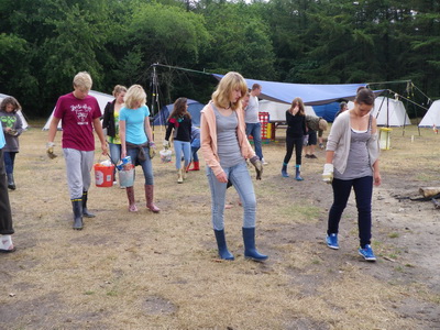 Das Jugendlager durfte zwischen den Schauern auf dem Platz und besonders hinter den Zelten Müll sammeln.