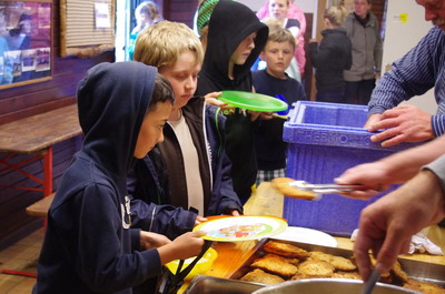 Frühstück gab es von 9-11 Uhr. Im Haus konnten am Vormittag Spiele gespielt werden.