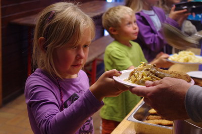 und weil es immer noch regnete, fand das Mittagessen im Haus statt.