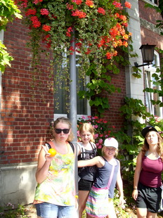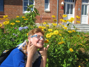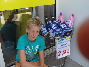 So entstanden die folgenden Bilder: Mit gelben Blumen, auf einer Bank, mit Putzartikeln,