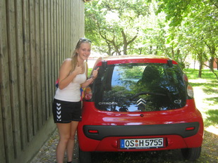 mit einem roten Auto, mit dem Hinweis auf eine bevorstehende Veranstaltung,