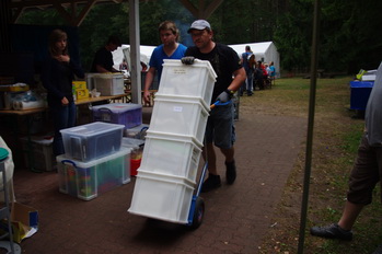 packten die Mitarbeiter schon die ersten Kisten in den LKW.