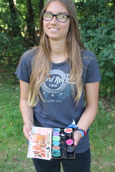 An den Farbstationen gab es zu der Tuschkastenfarbe auch noch einen Schwammtuchstreifen.