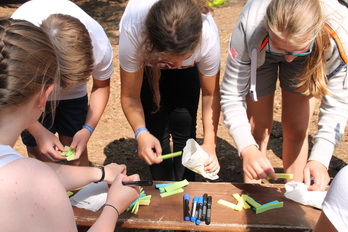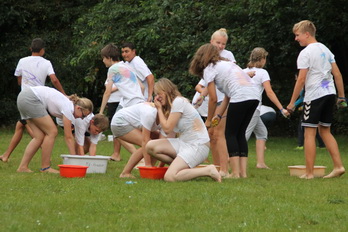 Am Vormittag mussten die Kinder in Gruppen "verschiedenfarbige" Aufgaben erledigen,