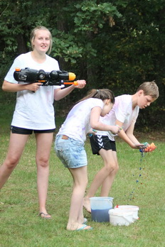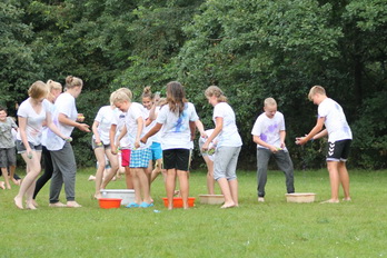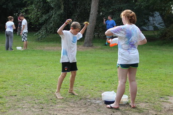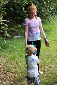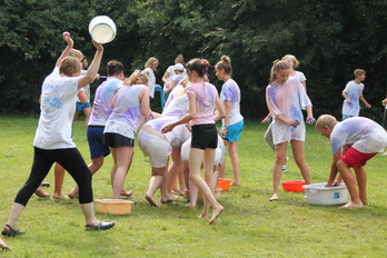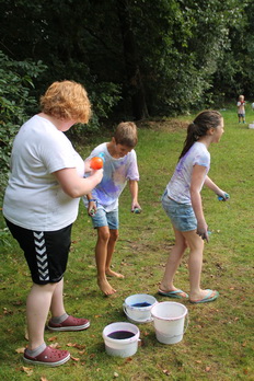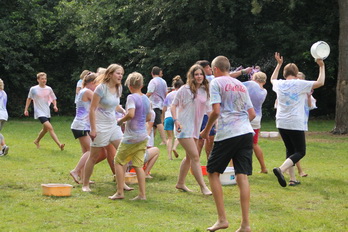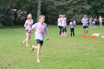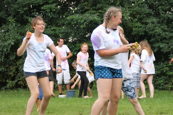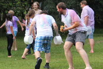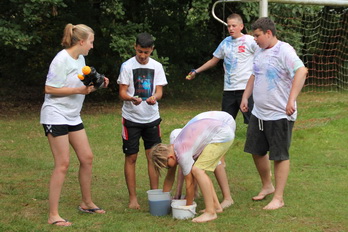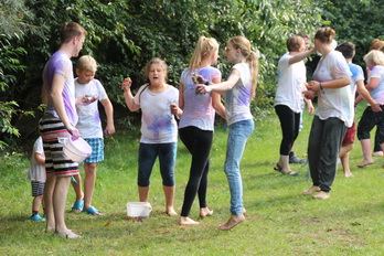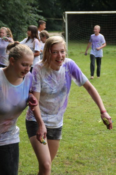 Damit gab es am Nachmittag eine wilde Farb und Wasserschlacht.