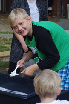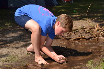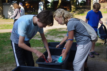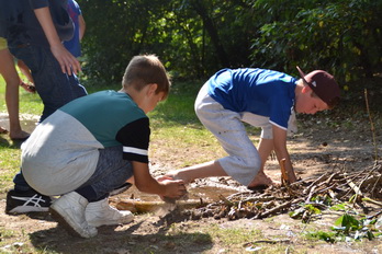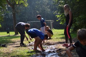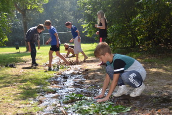 Die Kinder haben den kleinen Bach sofort entdeckt.