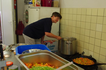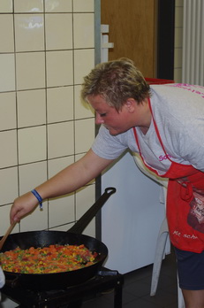 Zum Mittag bereitet die Küche eine Reispfanne zu.