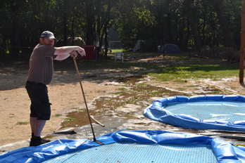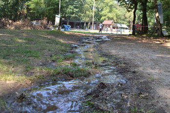 Weil Marco das Wasser aus den Pools schon ablaufen läßt, fließt nun die "Lütje" durch unser Lager.