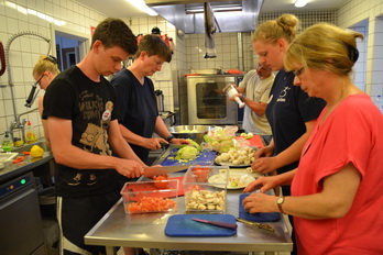 Vor dem Abendbrot gab es einen Großeinsatz in der Küche, um die Salatbar vorzubereiten.