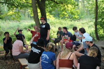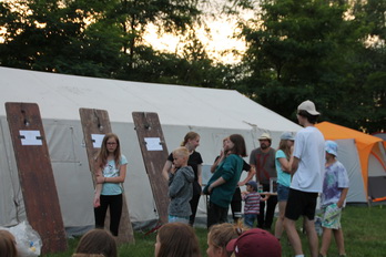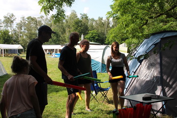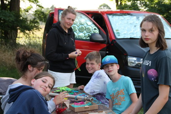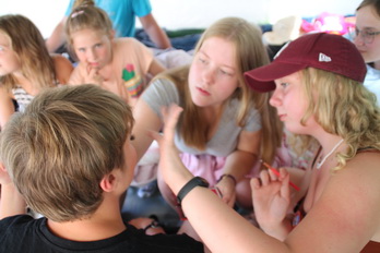 Am Sonntagvormittag feierten wir einen Gottesdienst. Nachmittags konnten die Teilnehmer basteln, malen, musizieren oder Spiele spielen. Am Abend haben alle zusammen 1,2 oder 3 gespielt