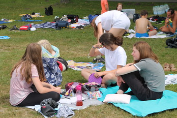 Freitag Vormittag gingen alle Teilnehmer und fast alle Mitarbeiter zu Fuß zum Tankumsee zum Baden.