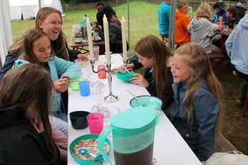 Nach dem Mittagessen bereiteten die Einheitengruppen etwas für den nächsten Tag vor.